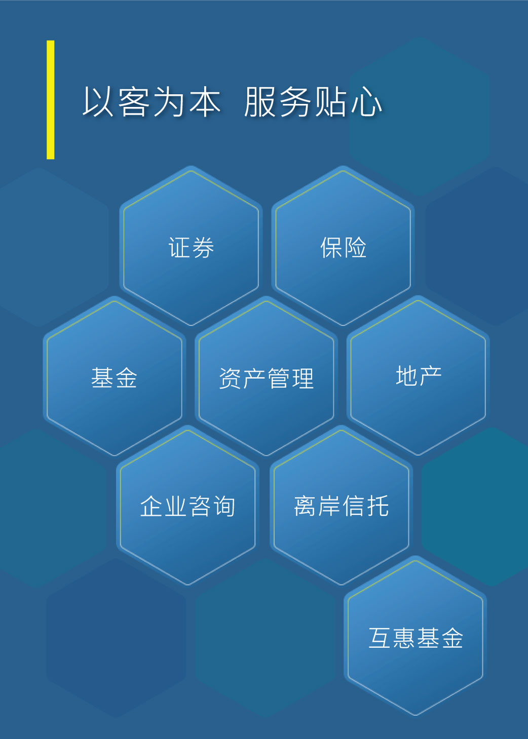为了给客户提供更完善的金融服务,我们与包括世界500强企业的保险公司合作,例如富卫保险、安盛、友邦保险、中国太平、Singlife、中国人寿等,代销其不同种类的保险产品,包括:储蓄寿险、万用寿险、理财寿险、危疾保险及投资、相连寿险等金融产品。保单货币可选美元、欧元、英磅、澳元、加币、纽元、港元、人民币。